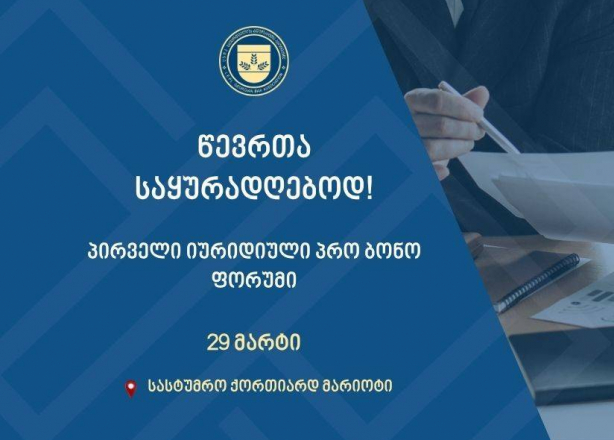 წევრებს, რომლებსაც სურვილი გაქვთ მონაწილეობა მიიღოთ პრო ბონო ფორუმში და გასცეთ უფასო იურიდიული კონსულტაცია, გთხოვთ, 25 მარტის 17:00 საათამდე გაიაროთ რეგისტრაცია ბმულზე.