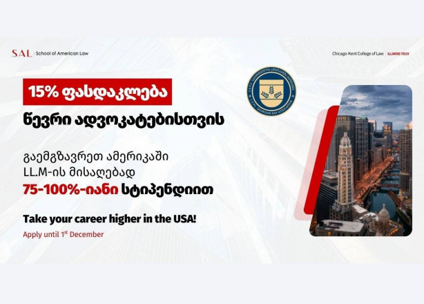 ჩიკაგო-კენტის სამართლის სკოლა, საქართველოს ადვოკატთა ასოციაციასთან გაფორმებული ურთიერთთანამშრომლობის ფარგლებში, ადვოკატთა ასოციაციის წევრებს სთავაზობს სწავლას ამერიკული სამართლის სკოლაში (SAL) 15%-იანი შეღავათით.