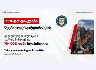 ჩიკაგო-კენტის ამერიკული სამართლის სკოლა, საქართველოს ადვოკატთა ასოციაციასთან გაფორმებული ურთიერთთანამშრომლობის ფარგლებში, ასოციაციის წევრებს სთავაზობს სწავლას ამერიკულ სამართლის სკოლაში 15%-იანი ფასდა... ვრცლად