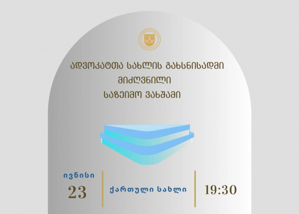 23 ივნისს, ადვოკატთა სახლის ოფიციალურ გახსნასთან დაკავშირებით, ადოკატებისთვის საზეიმო ვახშამი გაიმართება.